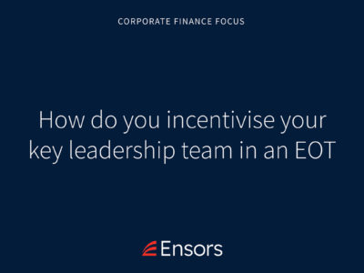 Home Insights Corporate Finance Focus: Incentivising Key Leadership Teams in Employee Ownership Trusts Corporate Finance Focus: Incentivising Key Leadership Teams in Employee Ownership Trusts By David Scrivener, Partner 5th Jun 2025 Share: Link copied Share: Link copied How do you incentivise your key leadership team in an Employee Ownership Trust? Speak to David Scrivener Author David Scrivener Partner 01473 220081 Email More from this author Insight Integration and Beyond 4 min read 12th Nov 2025 Newsletters Building up to Succession 3 min read 19th Jul 2023 Insight Investment secured for Vanilla Electronics 2 min read 7th Jul 2020 Related Services Employee Ownership Trusts (EOT) We can help you to realise the value of your business but remain in charge, benefitting from 0% Capital Gains Tax on the proceeds Corporate Finance If you’re looking to refinance, restructure, diversify, sell or divest then Ensors is here to help.